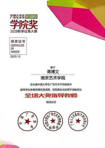 广编教师蒋博文荣获“全场大奖指导教师”称号